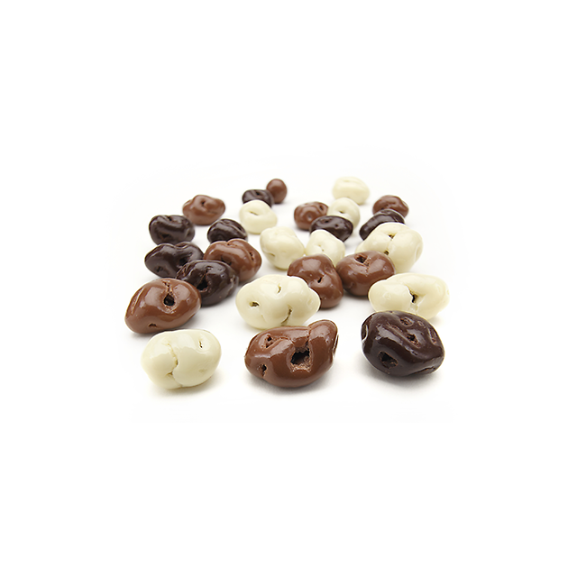 Beskrivning: Russin dragerade i mörk choklad, mjölkchoklad, vit choklad och med smak av rom.