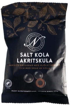 Beskrivning: Lakrits dragerad med mjölkchoklad och med smak av kola.
